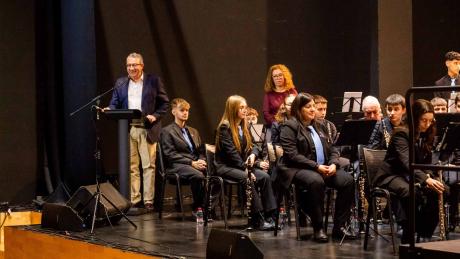 Following this, La Nova's principal conductor, Francisco José Rovira Peretó, led the concert, which began with the pasodoble ‘Origen’ by Alejandro Martínez and continued with ‘Saxophone Concerto in E flat Op. 109 (1935)’ by Alexander Glazounou; ‘Angkor’ (symphonic poem 2025) by Eric Rodríguez; ‘May Fair Lady’ by Frederick Loewe, arranged by Alfred Reed; ‘Iberia Míticaventura (Fantasía 2002)’ by Ferrer Ferran; and concluded, as an encore, with a performance of the anthem of the Valencian Community.