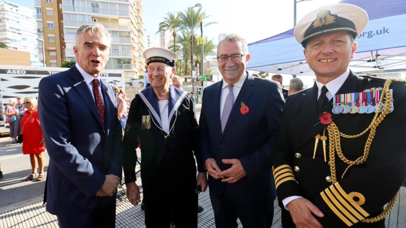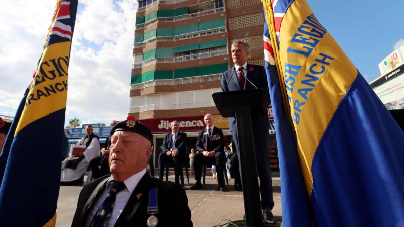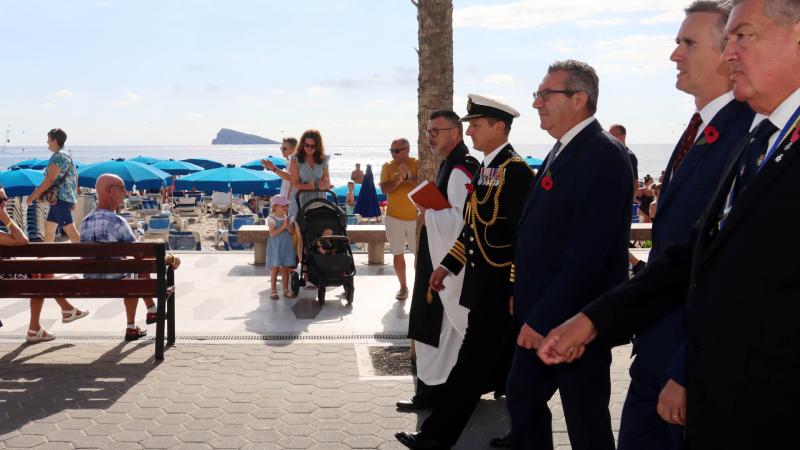 This afternoon, Benidorm hosted the Royal British Legion's annual Poppy Appeal. Through the sale of paper poppies, the organisation raises funds to help British veterans and their families who have fought in the conflicts following the First World War. The Mayor of Benidorm, Toni Pérez, presided over the parade and subsequent tribute to British war veterans, along with the British Ambassador to Spain, Alex Ellis, on his first official visit to Benidorm. Also participating were the British Defence Attaché, Anthony Crabb; the Vice-Consul in Alicante, Sara Munsterhjel; Stephen Lee of the Royal British Legion Board of Trustees; the District Chaplain of the Royal British Legion in Spain, Reverend Richard Seabrook; and the local RBL President, Paul Kane.
