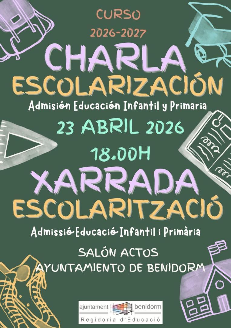 La Concejalía de Educación ofrecerá el próximo día 23 de abril a las 18:00 una charla informativa sobre el proceso de admisión a centros públicos y concertados de Educación Infantil y Primaria para el curso 2026-2027. Tendrá lugar en el salón de actos del Ayuntamiento de Benidorm.