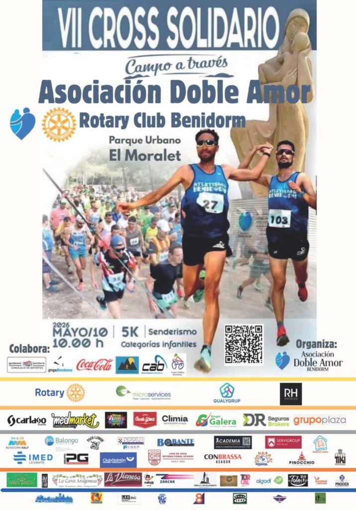 El domingo 10 de mayo, tendrá lugar la séptima edición del Cross Solidario Doble Amor, actividad benéfica organizada por la Asociación Doble Amor, con la colaboración de la Concejalía de Deportes del Ayuntamiento de Benidorm, en la zona del Parque del Moralet.