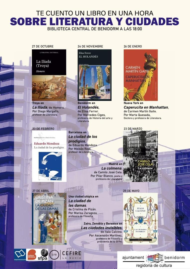 La Biblioteca de Benidorm acoge un nuevo ciclo de encuentros literarios bajo el título “Te cuento un libro en una hora”, una propuesta cultural que invita a descubrir grandes obras de la literatura universal a través de la relación entre literatura y ciudades.