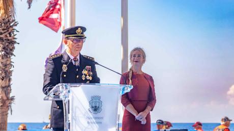 Benidorm ha celebrado hoy jueves el Día de la Policía Nacional, festividad de los Santos Ángeles Custodios, con un acto solemne en la avenida Europa, en la confluencia con el Paseo de Alcoy, para arropar a los agentes y personal funcionario de la Comisaría local. La alcaldesa en funciones de Benidorm, Ana Pellicer, ha presidido el mismo en compañía del comisario jefe de Benidorm, Luis Manuel Sánchez Navarro, quien ha agradecido públicamente el “incondicional apoyo” del Ayuntamiento a este cuerpo policial y ha expresado su “gratitud infinita” por la colaboración en la organización de las festividades del patrón y en su trabajo del día a día.
