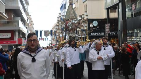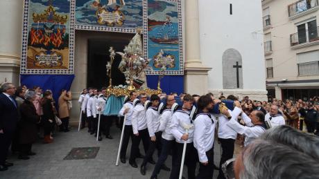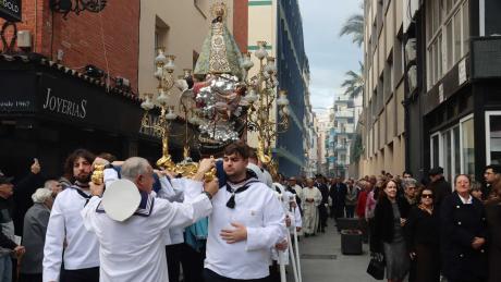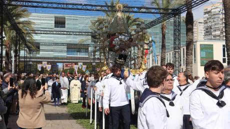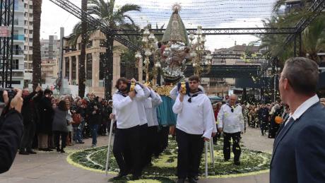 La programación, no obstante, ha sufrido algunos cambios. Así, se ha suspendido el bombardeo aéreo previsto a causa del viento y también se ha modificado el recorrido de traslado de la imagen de la Virgen desde la iglesia de San Jaime hasta la plaza de SS MM Los Reyes de España, que ha evitado pasar por la playa de Levante por el mismo motivo. En su lugar ha discurrido por Pérez Martorell, Martínez Alejos y de ahí a la calle Herrerías y a la plaza de SS MM los Reyes de España. Un traslado que se ha efectuado a hombros de los ‘Mariners de la Mare de Déu’ ante centenares de personas congregadas durante el recorrido y en el que han participado las entidades festeras locales, la Associació de Penyes, la Comissió de Festes Majors Patronals y las tres bandas musicales de la ciudad, entre otros.