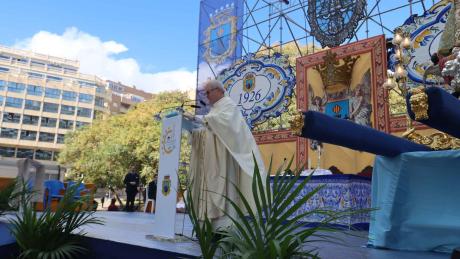 Más de 2.000 personas acuden a la misa celebrada en la Plaza de SS MM los Reyes de España, que ha sido oficiada por el obispo de la diócesis Orihuela-Alicante, José Ignacio Munilla