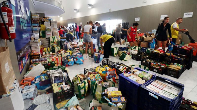 Miles de ciudadanos han acudido al Palau d’Esports para donar productos y colaborar en la recogida de artículos de primera necesidad para los damnificados por la DANA