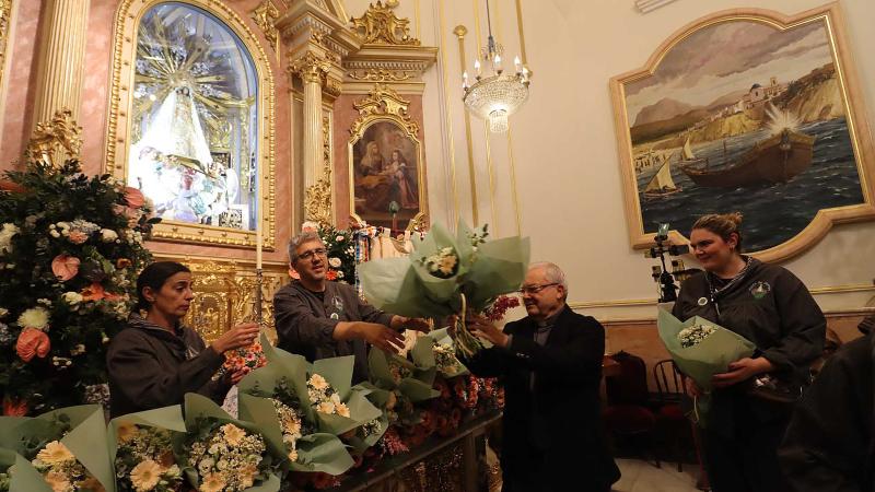 Por la mañana, tras la degustación de bollos a la paleta del viernes por la noche, los festeros se concentraron a las nueve de la mañana para colgar la alcachofa en mitad de la plaza de la Constitución. Media hora después, con la presencia de autoridades y de las reinas de las Festes Majors Patronals 2025, Paula Pascual Sánchez y Aitana Pérez Gutiérrez, y de sus corres de honor, los festeros emprendieron un pasacalles por el casco antiguo en dirección a la iglesia de Sant Jaume i Santa Anna, donde ofrendaron sus flores a la patrona y participaron en la misa sabatina que se celebra todas las semanas en su honor.