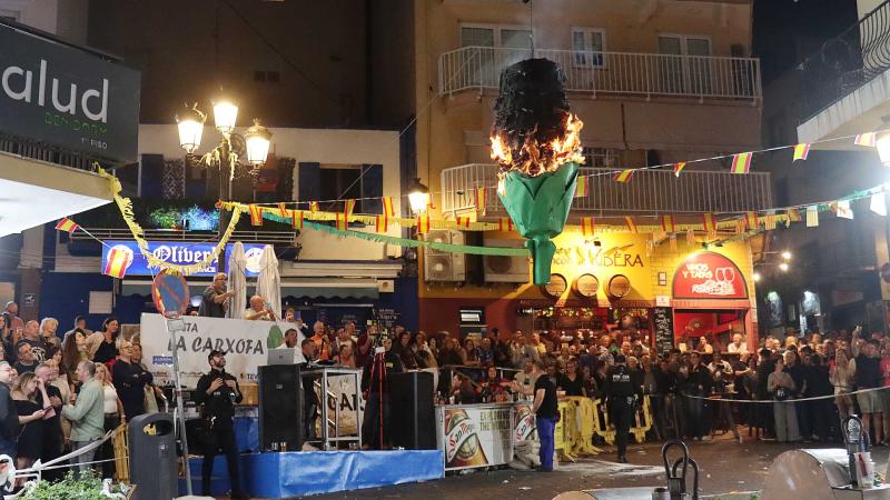 El casco antiguo de Benidorm celebró ayer la tradicional Festa de la Carxofa, una de las antiguas de Benidorm, que se celebra cada año el sábado posterior a las Festes Majors Patronals en la plaza de la Constitución, donde antiguamente se montaba el mercado de abastos de la localidad. La `penjà’ de una alcachofa de grandes dimensiones y su ‘cremà’ al filo de la medianoche marcaron el inicio y el fin de una jornada llena de actos, donde no faltaron la ofrenda de flores a la Virgen del Sufragio, degustaciones gastronómicas, concursos de dibujo o de bebedores de cerveza, y una verbena amenizada por música de Dj.