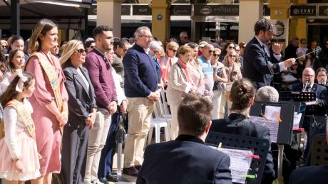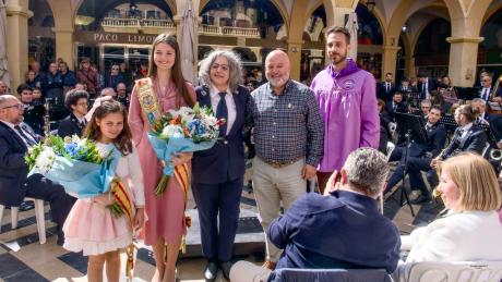 Durante el concierto, la Unión Musical ha obsequiado a las reinas y a los presidentes de la Comissió y de las peñas con unos ramos de flores e insignias conmemorativas respectivamente.