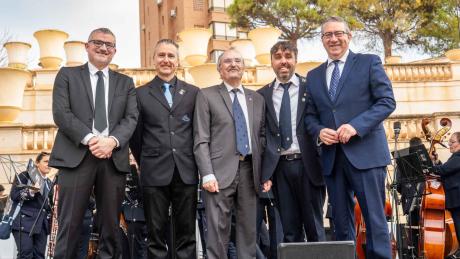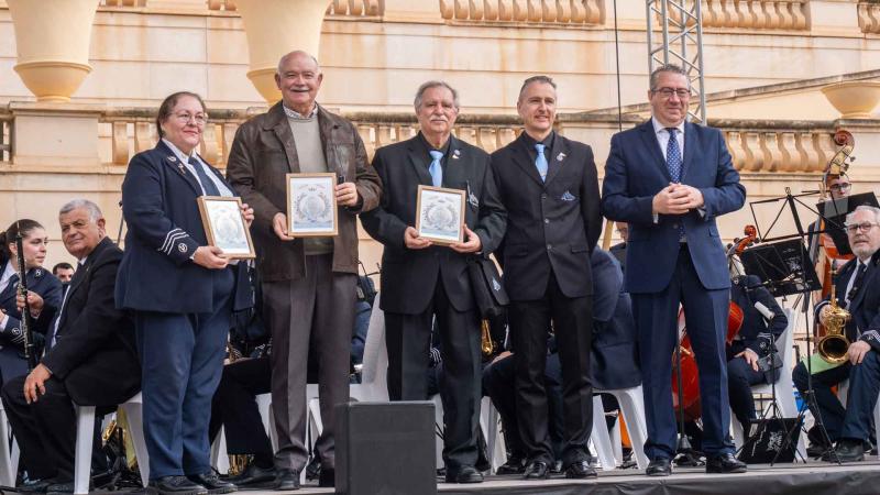 A continuación, los directores de las tres bandas han sido obsequiados, de manos de Toni Pérez, con unas reproducciones del cartel conmemorativo del centenario, obra de la artista M.ª Carmen Zaragoza y, seguidamente, el alcalde se ha dirigido a los asistentes para recordar la “emoción” del “momento histórico” en que “nuestras tres bandas se han dado la mano” para homenajear a la Mare de Déu del Sofratge.