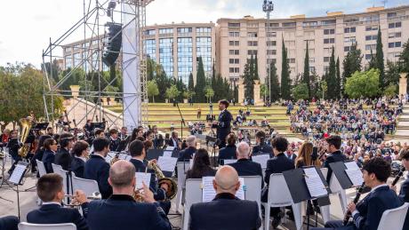 En segundo lugar, ha actuado la Societat Musical l’Illa de Benidorm, bajo la batuta de su nuevo director titular, Oswaldo Olmos La banda ofreció el pasodoble ‘Virgen del Sufragio’, con letra y música de Magdalena Simarro y arreglos de Josep Cano, interpretado por primera vez en esta versión con la propia autora como solista vocal. A continuación, se ha estrenado ‘Sufragi d’ànimes nàufragues’, pieza compuesta por Josep Cano expresamente para el centenario.