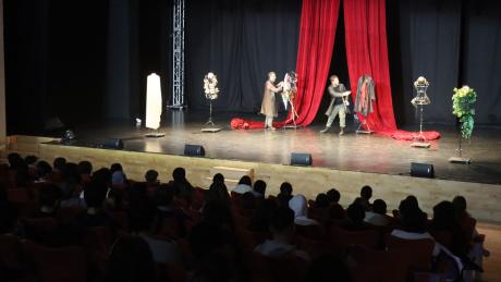 A lo largo de la mañana, el alumnado, dividido en dos pases, a las 9,30 y a las 11,30 horas, acudió a la representación de la obra ‘La loca historia de la literatura’, a cargo de la compañía ‘Teatro de Poniente’. Esta representación, una propuesta dinámica, divertida y pedagógica que recorre las grandes obras y autores de la literatura universal de forma amena y accesible para los jóvenes, “se convierte en una excelente oportunidad para complementar los contenidos curriculares desde una perspectiva artística” ha señalado el concejal de Cultura, Jaime Jesús Pérez.