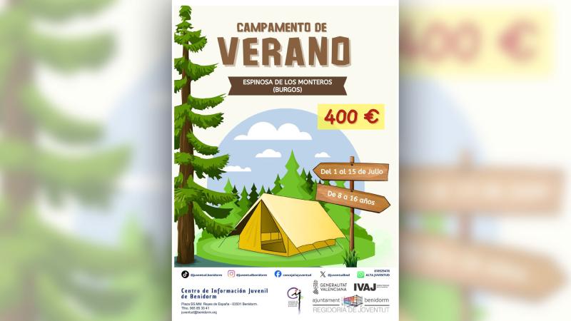 La Concejalía de Juventud del Ayuntamiento de Benidorm ha organizado un campamento de verano que se desarrollará del 1 al 15 de julio en la localidad burgalesa de Espinosa de los Monteros. La actividad se llevará a cabo en un entorno natural único rodeado de montañas y paisajes impresionantes y las instalaciones están completamente equipadas con todo lo necesario para este tipo de campamentos (tiendas de campaña, cocina, comedor, servicios higiénicos y duchas, piscina, explanadas para juegos, campo de deportes…).