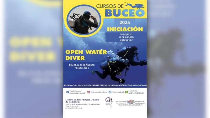 La Concejalía de Juventud del Ayuntamiento de Benidorm ha organizado dos cursos diferentes de buceo dado el éxito cosechado en las ediciones anteriores. Uno será de iniciación a la especialidad y otro para hacerlo en aguas abiertas y válido para cualquier lugar del mundo.