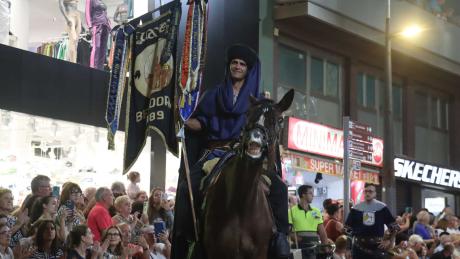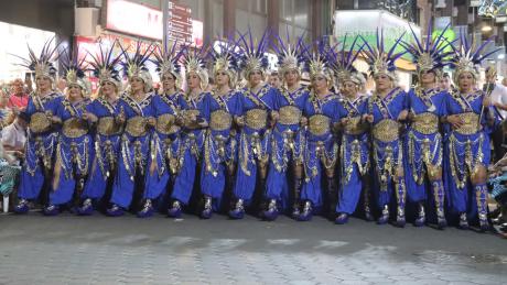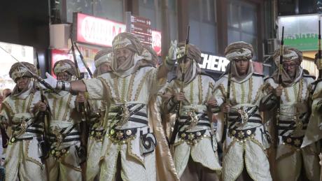Poco antes de las 20.00 h, en la calle Tomás Ortuño en su confluencia con la calle Ondulada se vivía el trasiego de los integrantes de las comparsas y músicos que se disponían a desfilar en el acto central de las fiestas. Por el bando moro, Nazaríes, Tuaregs, Musulmanes Tagarinos y Benidarhims; por el cristiano, Cavallers de la Baronia y Cruzados. El bando moro, por cierto, estuvo reforzado con la ‘’filà’ formada por la reina mayor de las Festes Majors Patronals, Paula Pascual, y sus damas de honor.