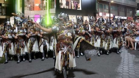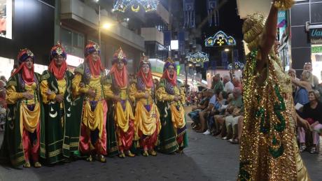 El tercer día de Moros y Cristianos de Benidorm congregó anoche a miles de personas en el centro de la ciudad para disfrutar del evento más multitudinario de las fiestas, la Entrada Mora y Cristiana, un día antes de la finalización de estos festejos.