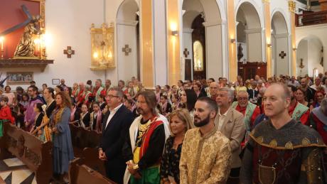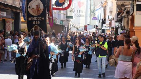 Centenares de personas ha podido disfrutar del pasacalles que ha recorrido el centro de Benidorm desde la Plaza de SS. MM. los Reyes de España, calle Herrerías, Paseo de la Carretera y Santa Faz para llegar a la iglesia de Sant Jaume i Santa Anna en la que todos, moros y cristianos, han ofrendado al patrón de Benidorm antes de celebrar la tradicional misa.