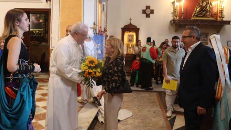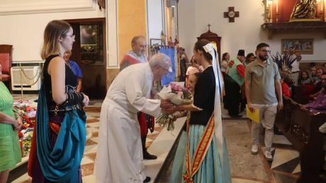 Tras la escenificación, las ‘filaes’ se han dirigido en pasacalles hacia la iglesia de Sant Jaume y Santa Anna, acompañados por las autoridades, con el alcalde, Toni Perez, y la concejal de Fiestas, Mariló Cebreros, además de varios miembros de la corporación local. En la romería marchaban también las reinas de las Festes Majors Patronals 2025, Paula Pascual y Aitana Pérez, sus cortes de honor y los presidentes de la Comissió, Susana Martínez, y de la Associació de Penyes Verge del Sofratge, Jonathan López.