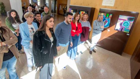 El concejal de Cultura, Jaime Jesús Pérez, y otros miembros de la corporación municipal han acompañado a la artista en el primer recorrido por la exposición alojada en el vestíbulo del edificio consistorial.