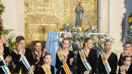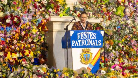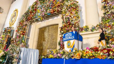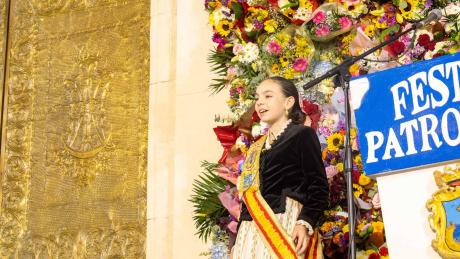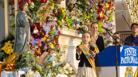 Tras la ofrenda, la plaza de Sant Jaume se emocionó con los versos recitados por la Reina Infantil,Aitana Pérez, escritos por Vicenta Pérez ‘Cuqui’, y con las palabras que dirigió a los asistentes la Reina Mayor, Paula Pascual, en los que agradeció el apoyo recibido durante todo este año por sus damas y mayorales y, en especial, por su familia.
