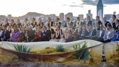 También se sentaban en la tribuna de autoridades, las reinas de las Fiestas, Paula Pascual y Aitana Pérez; los presidentes de la Comissió de Festes y de la Associació de Penyes, Susana Martínez y Jonathan López; el presidente a perpetuidad de la Comissió y de la ARC La Barqueta, Francisco Llorens; y una amplia representación de la sociedad civil benidormense.