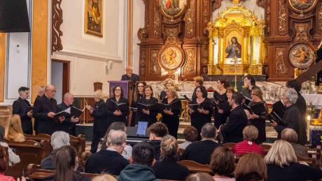 Bajo la dirección de Ramón Llorente Yáñez, la coral ha comenzado el recital con el ‘Adagio’ de Nicholas Britell y ha proseguido con ‘Orchestral Suite No. 3 in D Major, BWV 1068: Il. Air y ‘El arte de la fuga’ (Die Kunst der Fuge, BWV 1080, num. 1), las dos de Johann Sebastian Bach; ‘Virtus Sapientiae’, de Hildegard von Bingen, con la interpretación de la solista María Dolores Luján; ‘Crux Fidelis’, de Giovanni Pierluigi da Palestrina; el ‘Ave Maria’, de Edward Elgar; ‘Heyr, himna smiğur, de Þorkell Sigurbjörnsson y, por último, ‘Bogoroditse Devo’, de Sergei Rachmaninov.