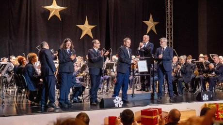 La banda ha interpretado, en su estreno mundial, dos piezas: el pasodoble ‘Ciclant’, de Josep Cano y ‘Mambodulan’, de Ximo Cano. Precisamente, tras la ejecución de esta pieza, se ha entregado a Pepe Antón la partitura de trompeta de este tema a él dedicado.