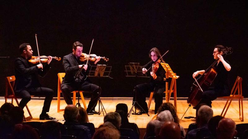 El cuarteto protagonista de este recital ha estado formado por los violinistas Antonio García Egea, Mirian Jódar Gabarrón, Cristina Regojo Huertos y el benidormense Adrián López Agudo, intérpretes que han demostrado un alto nivel artístico a lo largo de la velada y que han actuado en algunos de los escenarios más emblemáticos del mundo, como el Carnegie Hall de Nueva York o la Musikverein de Viena”.