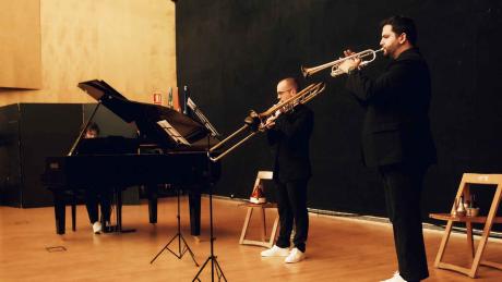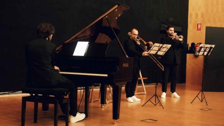 Kaleidos Trío, integrado por Vicente Cascales Mogica (trombón), Alfonso Ramón Cantó (trompeta) y Ángel López Martínez (piano), ha ofrecido el programa ‘Kaleidos Origins’, una propuesta concebida a partir de la búsqueda de un repertorio camerístico poco habitual, pero de gran riqueza sonora para estos tres instrumentos.