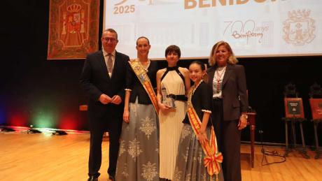 El acto, no obstante, se ha iniciado con la entrega de la distinción ‘Ciutat de Benidorm’ a María José Lozano Pérez, una distinción con la que se reconoce a las personas e instituciones que son o han sido “referentes en su labor diaria” por sus aportaciones a “la cultura local y valenciana”. A María José Lozano se le reconocen “los destacados méritos culturales” a lo largo de su trayectoria como docente de la especialidad de Informática en Secundaria, asesora del CEFIRE –Centro de Formación, Innovación y Recursos Educativos– de La Nucía y como persona muy vinculada a numerosas actividades relacionadas con el ámbito cultural en nuestra ciudad.