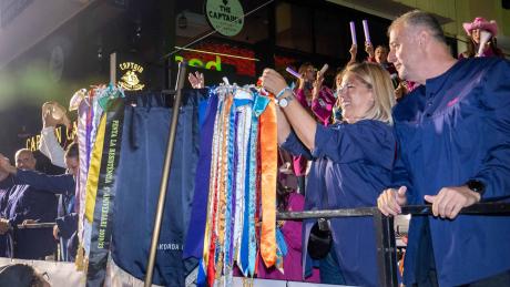 Durante el desfile, cada peña fue recibiendo el corbatín conmemorativo de las Festes Majors Patronals de 2025, de manos del alcalde, de la concejal de Fiestas, presidentes de la Associació de Penyes y de la Comissió, reinas y damas. El ambiente fue de total entusiasmo, con las calles repletas de público que animaba al paso de los peñistas.