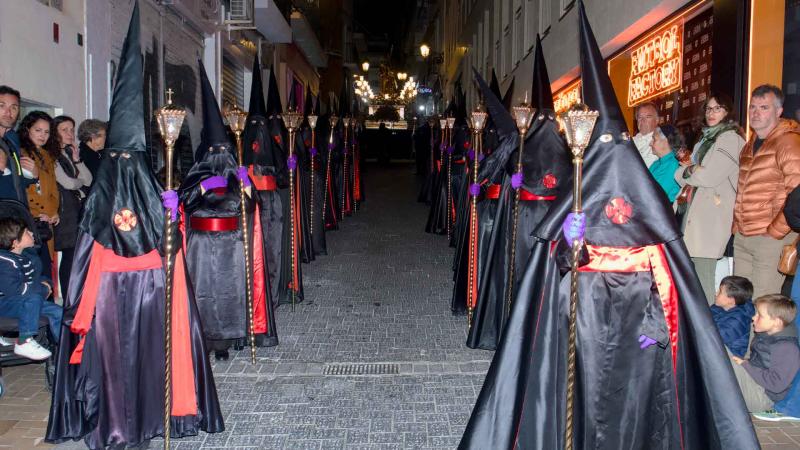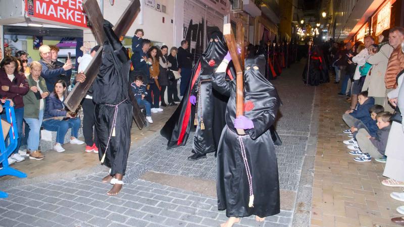 La Procesión General del Santo Entierro volvió a congregar anoche a cientos de vecinos y visitantes en Benidorm, que salieron a la calle para vivir la procesión más multitudinaria de la Semana Santa local en la noche del Viernes Santo. Las seis cofradías y hermandades de la ciudad participaron en un desfile marcado por el recogimiento, la emoción y la solemnidad.