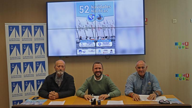 El concejal de Deportes, Javier Jordá, junto all presidente del Club Náutico Benidorm, Jaime Samper, y el coordinador deportivo, Rafa Madaleno, han presentado este miércoles esta nueva edición de la que es “una de las competiciones de vela más antiguas de cuantas se celebran en España y en la Comunitat Valenciana, superando ya el medio siglo de historia”, ha destacado el representante del Club.
