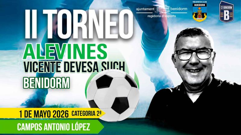 Los equipos que disputaran el Torneo de Fútbol Alevín ‘Vicente Devesa Such’ son CF Benidorm E, Peñaraval CF, CF AT Jonense, CF Gandía, CD Polop, CFUD Calpe, CF Promesas Elche, CFB Foietes, CF Benidorm G, CFUE Finestrat, SCD Carolinas y CF Alfaz del Pi