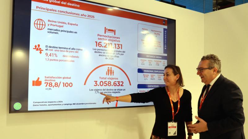 Toni Pérez ha concluido el balance avanzando que los datos sobre reservas para 2026 apuntan ya a un incremento de las mismas durante todos los mese del año. “Si se confirman los pronósticos que pudimos elaborar y trazar ya en la World Travel Market, y que iremos confirmando en estas jornadas con los principales touroperadores y con agencias y profesionales que vienen a Fitur, vamos a estar en un año muy bueno”.