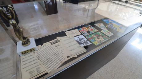 El hall del Ayuntamiento de Benidorm acoge desde este mediodía una exposición conmemorativa del Benidorm Fest y del Festival de la Canción de Benidorm, una muestra en la que se hace un repaso a la historia de ambos certámenes con documentación, discos, recortes de prensa, trofeos, carteles, etc.