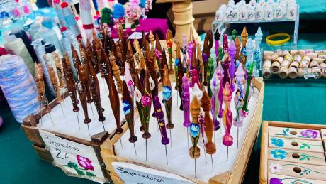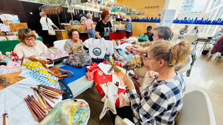 En él se han dado cita aficionadas a esta labor en la ciudad y también llegadas desde numerosos puntos de la comarca de la Marina Baixa, que han mostrado los encajes, puntillas, abanicos y otros trabajos, y compartido patrones e hilos.