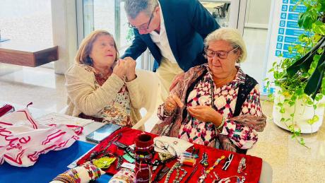 El alcalde Toni Pérez, junto a la edil del área, Ángela Zaragozí, y otros miembros del gobierno local han acompañado a las bolilleras en este encuentro, con quienes han departido y conocido de primera mano la laboriosidad de sus creaciones.