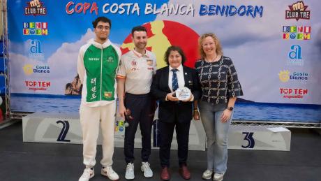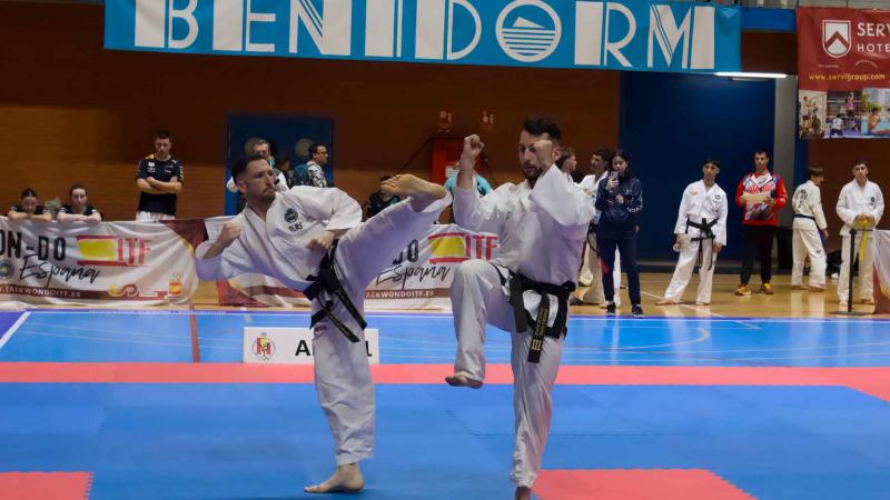 La competición se está disputando en las modalidades de formas, combate tradicional, combate y técnicas especiales, lo que ha podido comprobar el concejal de Deportes, Javier Jordà, junto a sus compañeros del equipo de gobierno municipal, Ángela Zaragozí y Luis Navarro, que han acompañado en la jornada al presidente del Club TAE de Benidorm y vicepresidente de la Federación Española, José Luis Diego.