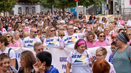 L'alcalde de Benidorm, Toni Pérez, i la regidora d'Igualtat, Ángela Zaragozí, han encapçalat la marxa al costat de la presidenta d'Anémona, María Botella, i bona part de membres de la corporació municipal. També han participat els diputats autonòmics, José Ramón González de Zárate i Mario Villar que s'han sumat a les reines de les Festes Majors Patronals Paula Sánchez i Aitana Pérez; la presidenta de la Comissió, Susana Martínez; i al president de l'Associació de Penyes Verge del Sofratge, Jonathan López i una gran multitud de ciutadans que van conformar la tradicional la “marea rosa”, encara que transmutada en el color blanc de l'edició de les samarretes promocionals en este 2025.